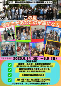 日本の大学・専門学校・日本語学校に通っている留学生のためのプログラムです。北海道の家庭にホームステイをしながら、日本文化体験/地域交流/学校交流/北海道ならではの体験ができます。夏と冬に開催していますので、日本の家庭や生活に興味のある人は、ぜひ参加してください。